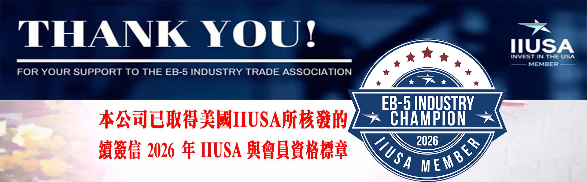 美國IIUSA所核發2026年IIUSA會員資格標章續簽信 - 惠安移民